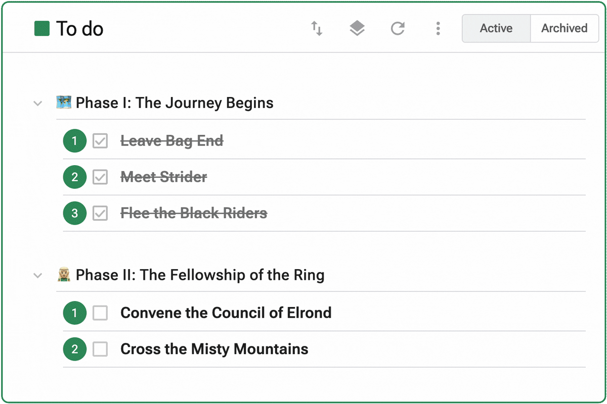 Sections are collapsible groups for related tasks. They are a clean way to organize tasks under a heading without adding a new layer of parent task/subtask hierarchy.
